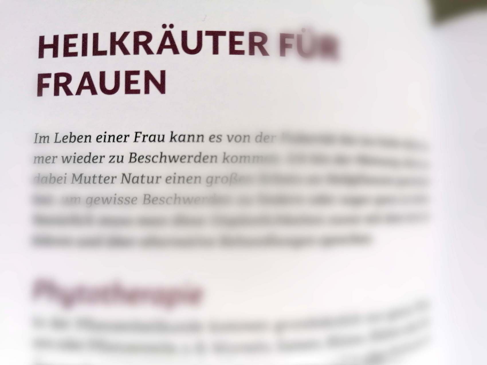 Eigene Kapitel widmen sich den Heilkräutern für Frauen von der Pubertät bis ins hohe Alter, den Duftkräutern, und der Naturmedizin Oxymel.
