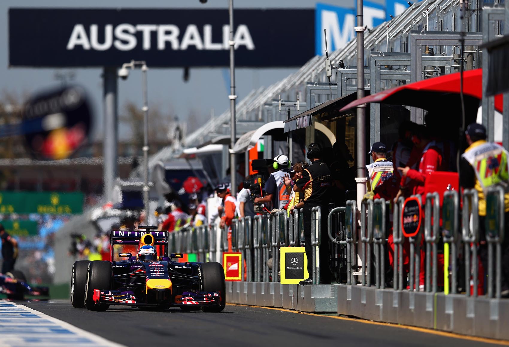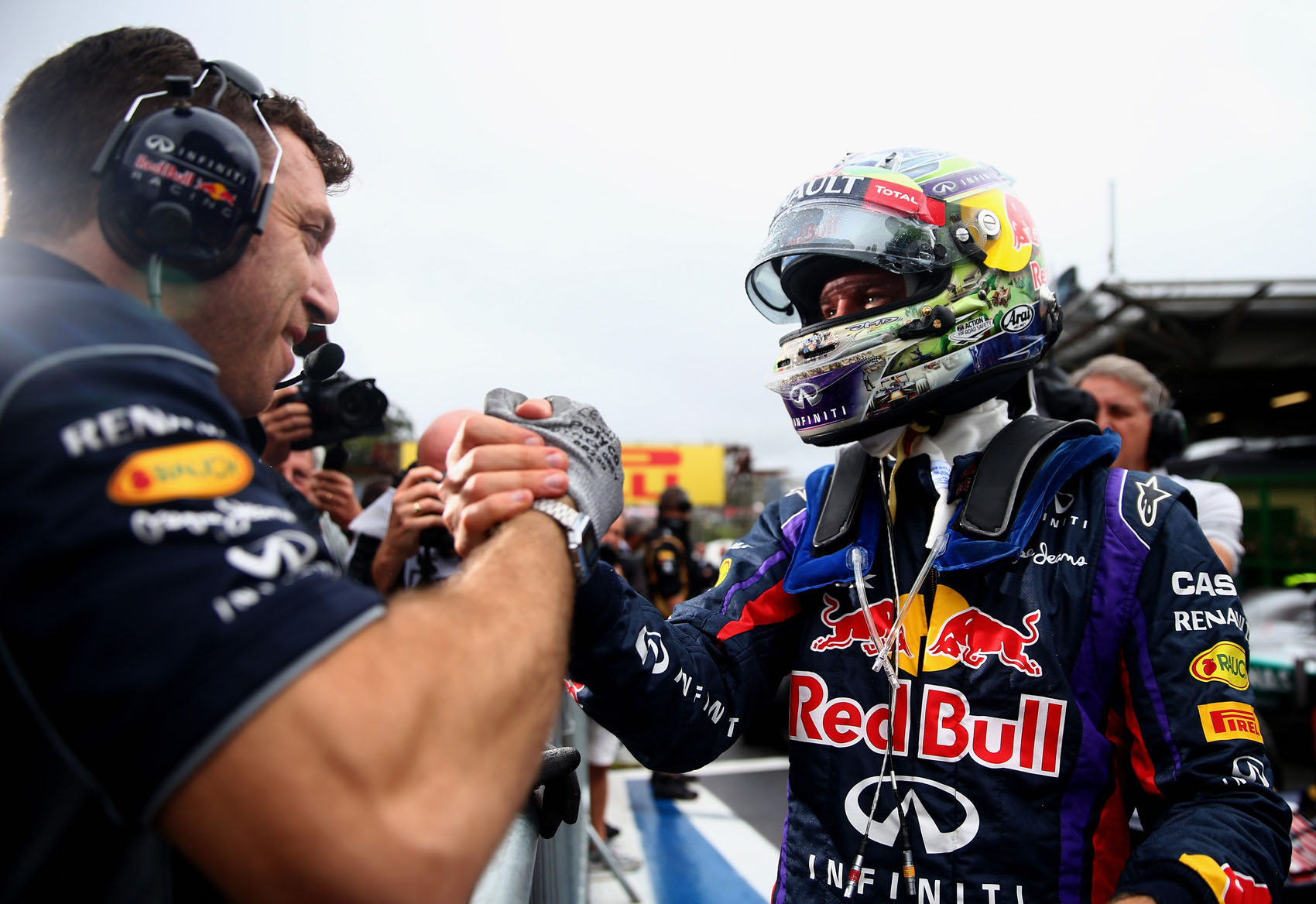 Nicht die schnellsten, aber immer bei den besten die beiden Red Bull. Sie starten aus der zweiten Reihe. Sensation bei den Bullen: Newbee Daniel Ricciardo steht vor Weltmeister Sebastian Vettel.