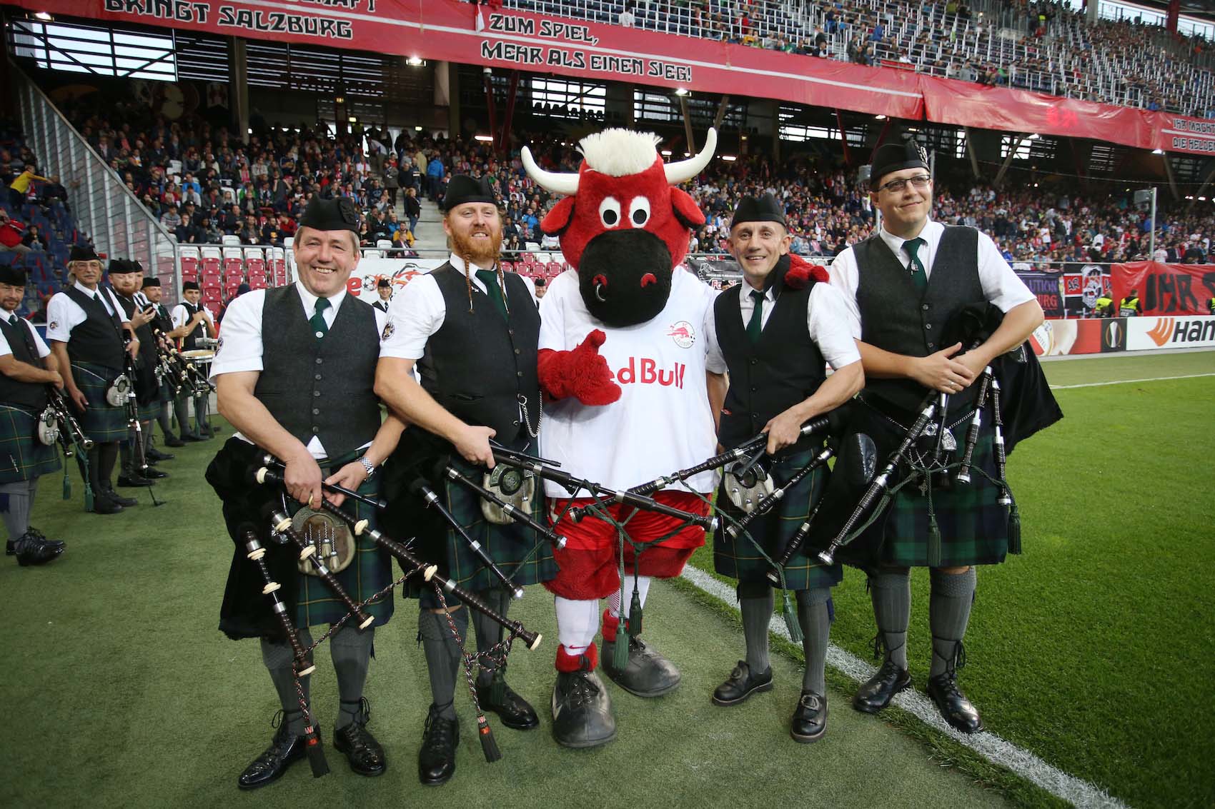 Tolle Stimmung bei der internationalen Partie in Klessheim. Schon vor dem Match sorgten die Fans der Gastmannschaft mit einem Dudelsack-Konzert für Begeisterung. Und dann auch noch Rod Steward in der Bullen Arena, nicht als Sänger dafür aber als begeisterter Fan. Der britischer Rock- und Pop-Sänger Sir Rod Stewart mitten auf der Tribüne unter den Fans, das sieht man auch nicht alle Tage. Und zur Freude der Fans gab´s auch etliche Selfies mit dem Star, der früher eigentlich selbst Fußballprofi werden wollte und fast jedes Match seiner Lieblingsmannschaft Celtic live erlebt. Mit mehr als 150 Millionen verkauften Tonträgern zu den erfolgreichsten britischen Sängern. Im Rolling Stone wurde er auf Rang 59 der 100 besten Sänger aller Zeiten gewählt. An