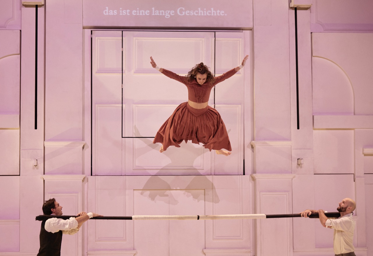 „Entre Chiens et Louves“ (Zwischen Hunden und Wölfen) enthüllt die Geschichten dreier Menschen, die in unterschiedlichen Epochen leben: 1870, 1960 und 2022. Der Hauptdarsteller Alex, aus dem Jahr 2022, taucht immer wieder in die Welten der Anderen ein und die Grenzen zwischen Realität und und Fiktion verschwimmen. Zu Beginn öffnen sich in der beeindruckenden Bühnenkulisse drei Wohnräume, aus den unterschiedlichen Epochen.